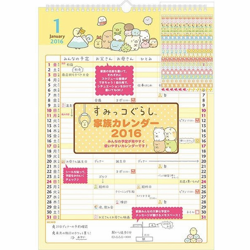 すみっコぐらし 壁掛けカレンダー 家族 16年版 Cd 通販 Lineポイント最大0 5 Get Lineショッピング